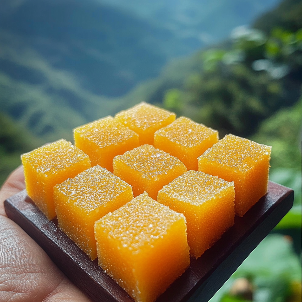 Les pâtes de fruits à la papaye et à la menthe offrent une alliance exotique et rafraîchissante. La douceur sucrée de la papaye s’harmonise parfaitement avec la fraîcheur de la menthe, créant une confiserie artisanale idéale pour les fêtes, les cadeaux gourmands ou simplement pour se faire plaisir.